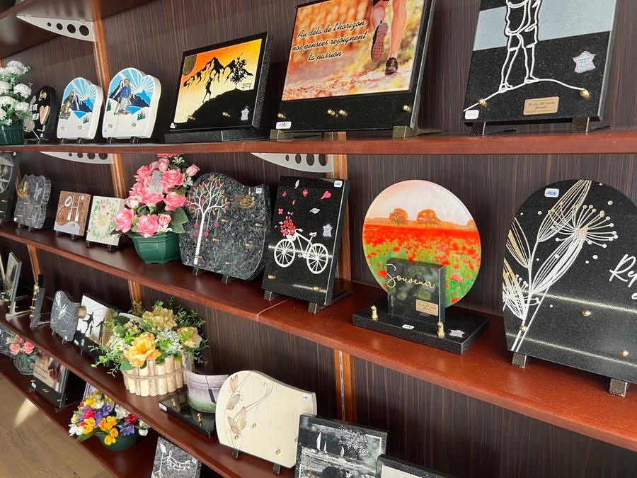 Nous vous accueillons dans notre boutique située à Thuir, où nous vous proposons un large choix d’articles funéraires fabriqués artisanalement en France, de qualité et sélectionnés avec soin.