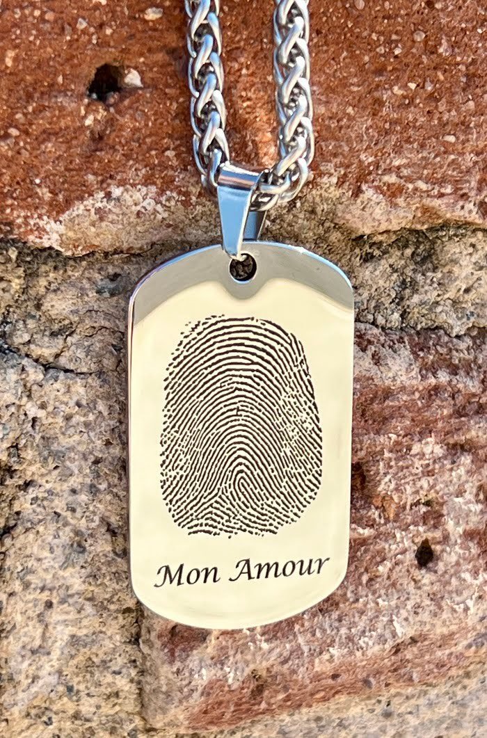 Nous vous proposons la création d’un bijou unique gravé,  avec l’empreinte digitale d’un proche disparu.